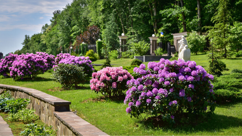 У червні в ландшафті контрастують ніжно-рожева магнолія річна і строкатий лилейник (43 сорти), яскраво виділяється тюльпанове дерево. У липні Деренівка огортається в фарби гортензії (48 видів і сортів), гібіскуса трав'янистої і Кельрейтер.