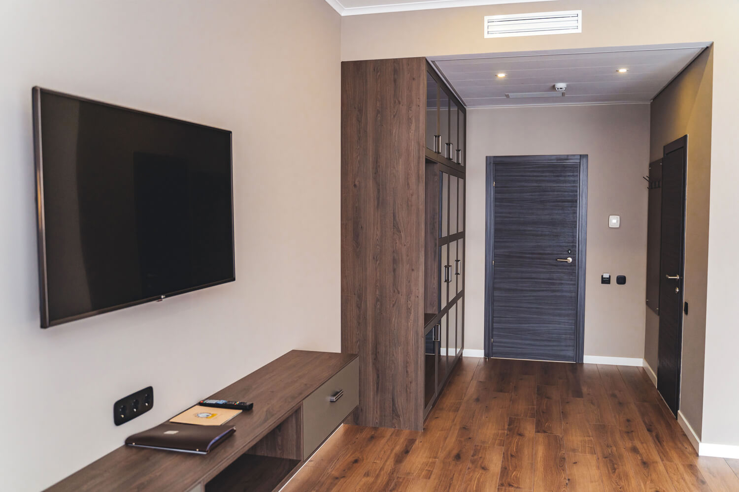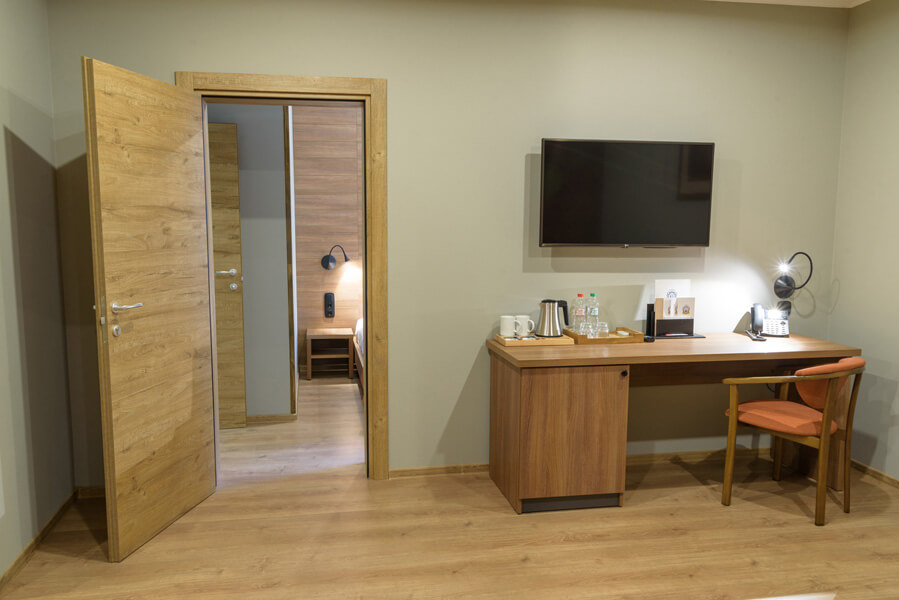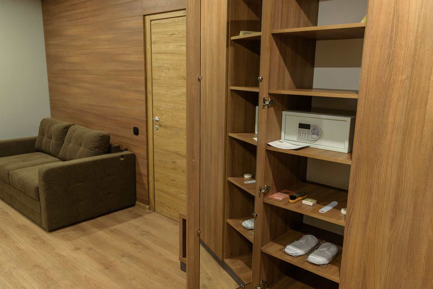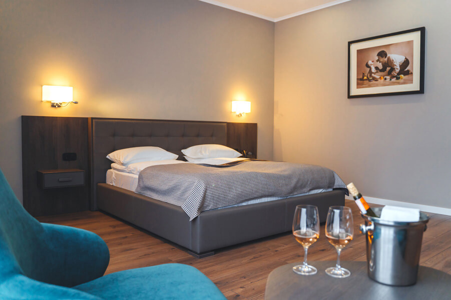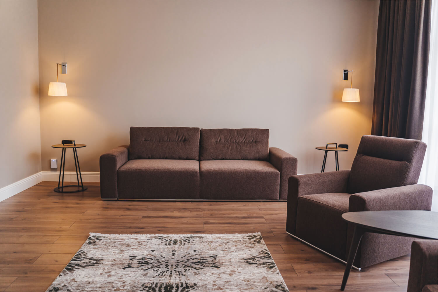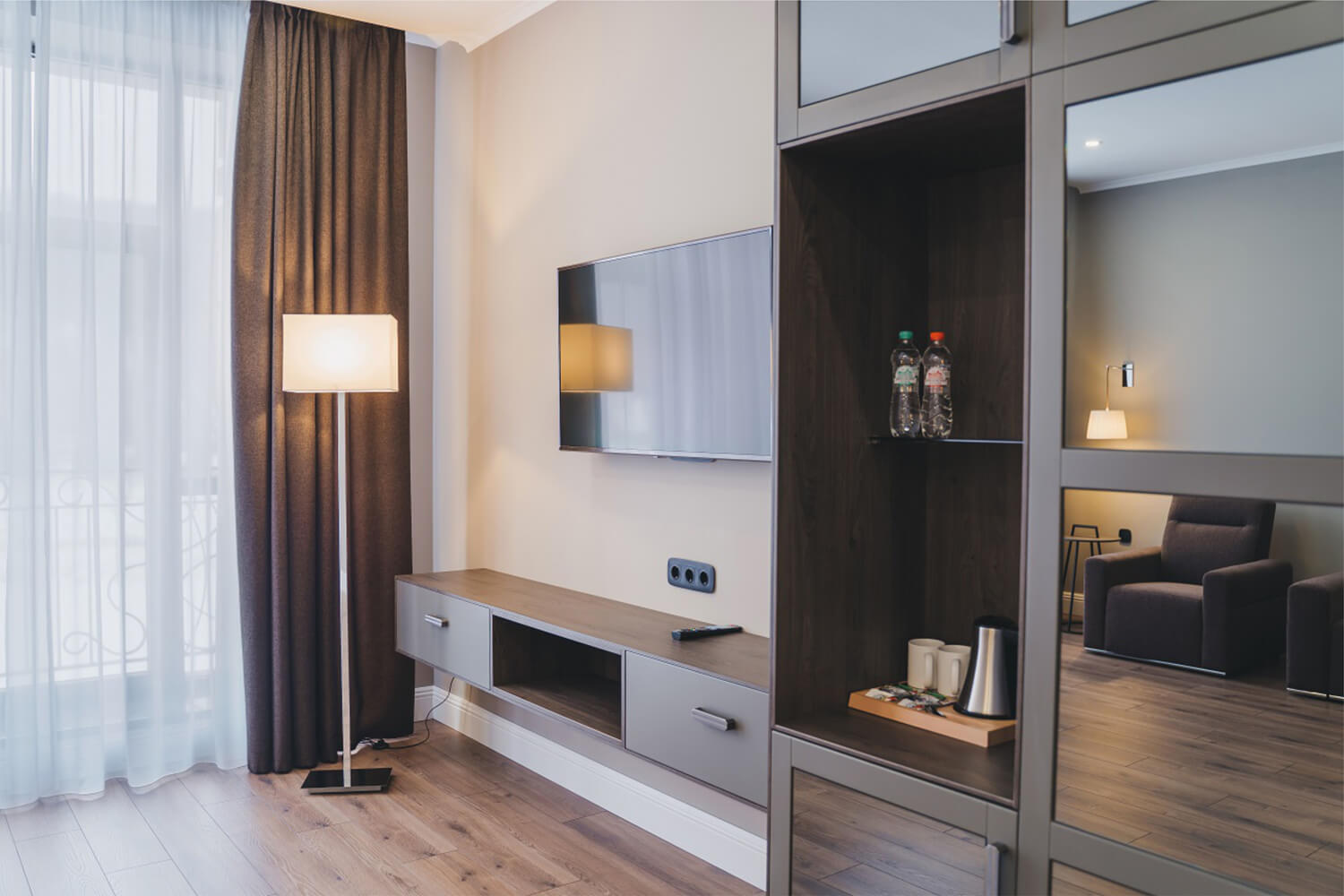 Апартамент-готель пропонує 44 комфортабельних апартаментів для розміщення гостей. Номери відрізняються площею та дизайном, а функціональність і концептуальний стиль об'єднують їх. Вони просторі і світлі, з характерними елементами дизайну. Різноманітність категорій апартаментів дасть можливість вибрати номер, найбільш відповідний меті Вашого візиту. Апартаменти розташовані на відстані 5-7 хв ходьби до основної території Санаторного Комплексу «Деренівська Купіль».