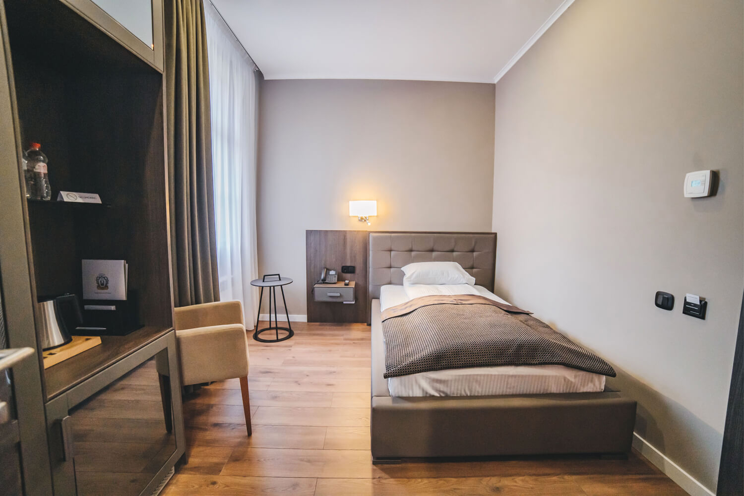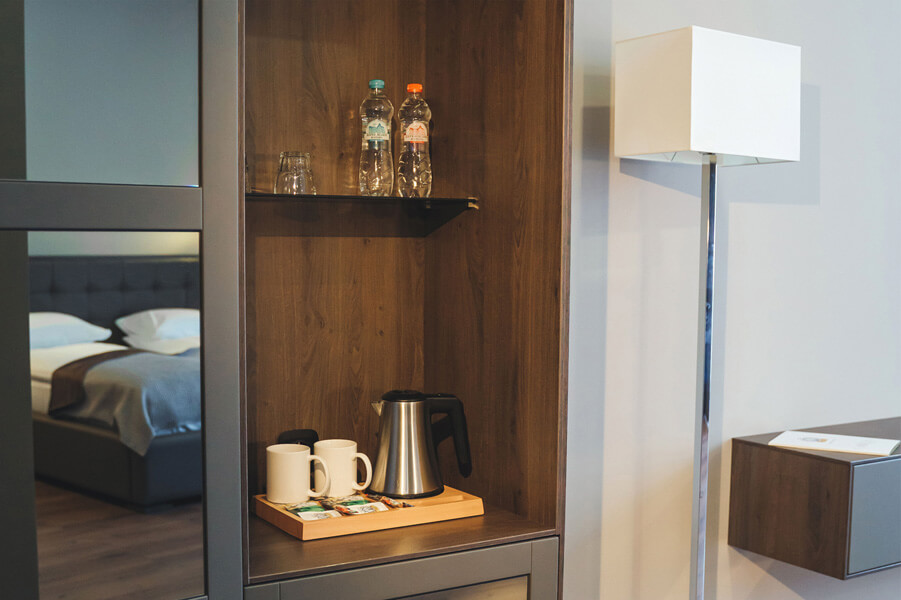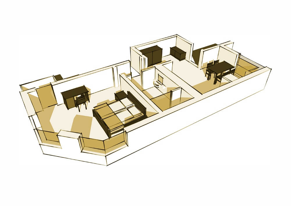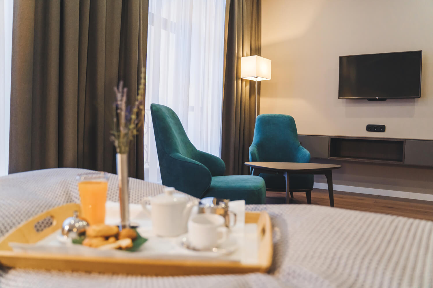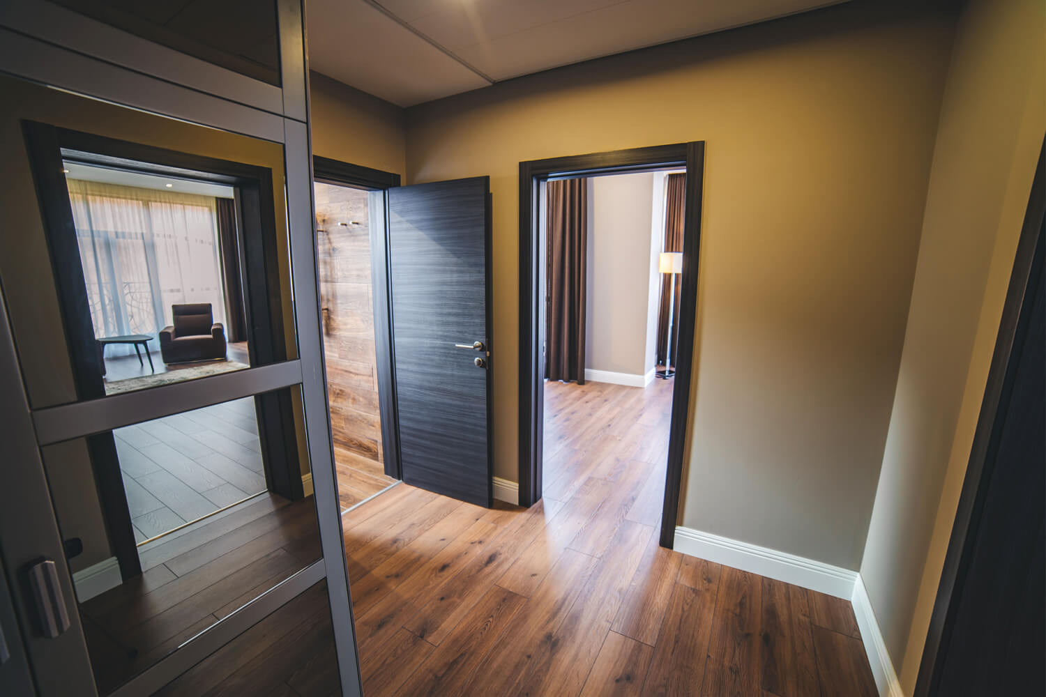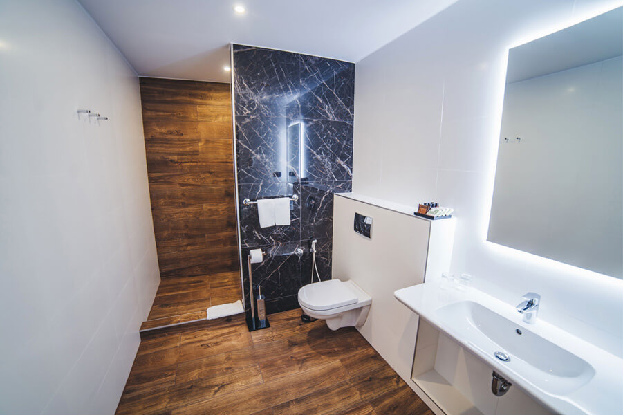 Апартамент-готель пропонує 44 комфортабельних апартаментів для розміщення гостей. Номери відрізняються площею та дизайном, а функціональність і концептуальний стиль об'єднують їх. Вони просторі і світлі, з характерними елементами дизайну. Різноманітність категорій апартаментів дасть можливість вибрати номер, найбільш відповідний меті Вашого візиту. Апартаменти розташовані на відстані 5-7 хв ходьби до основної території Санаторного Комплексу «Деренівська Купіль».