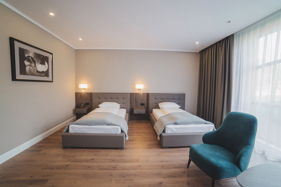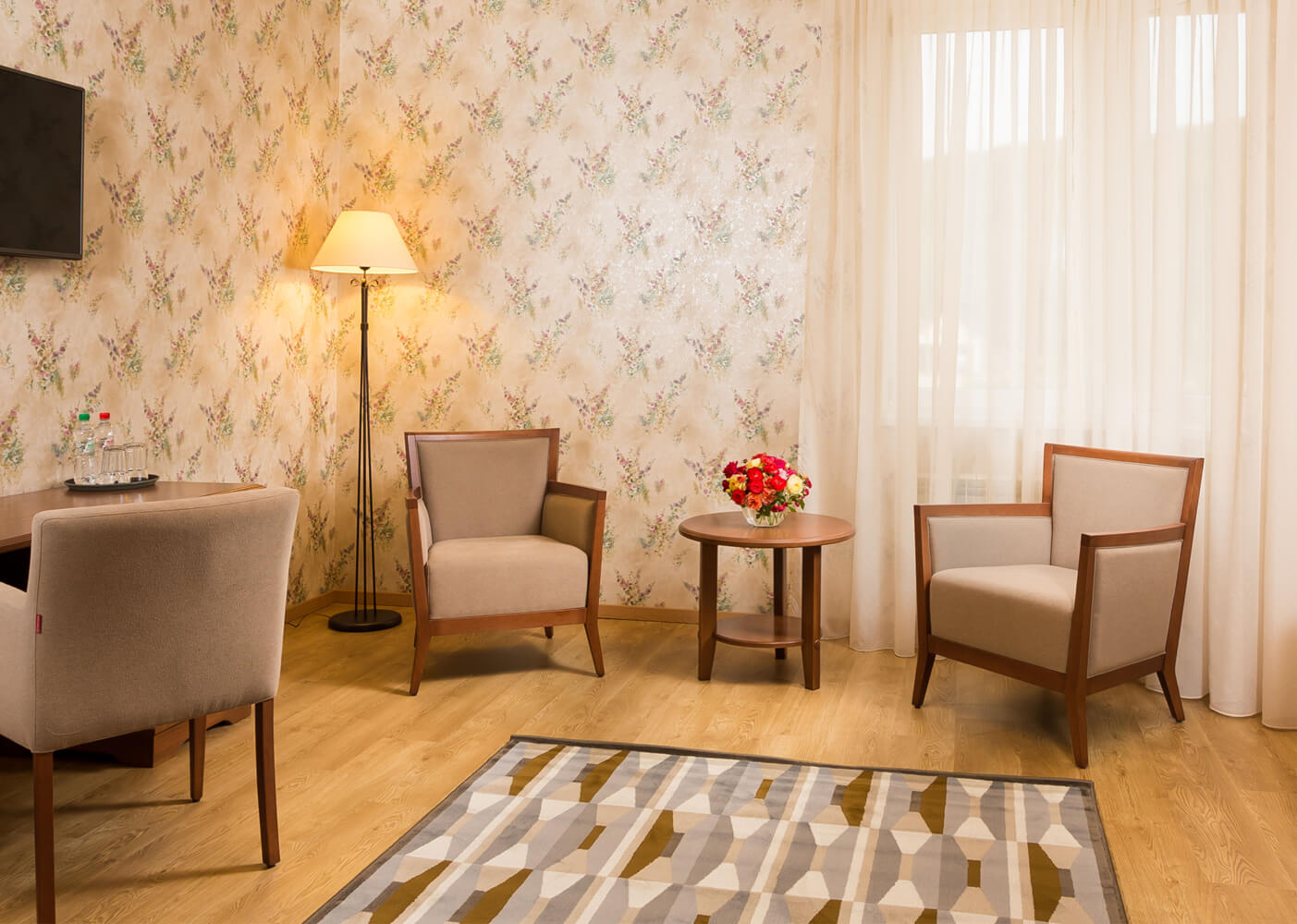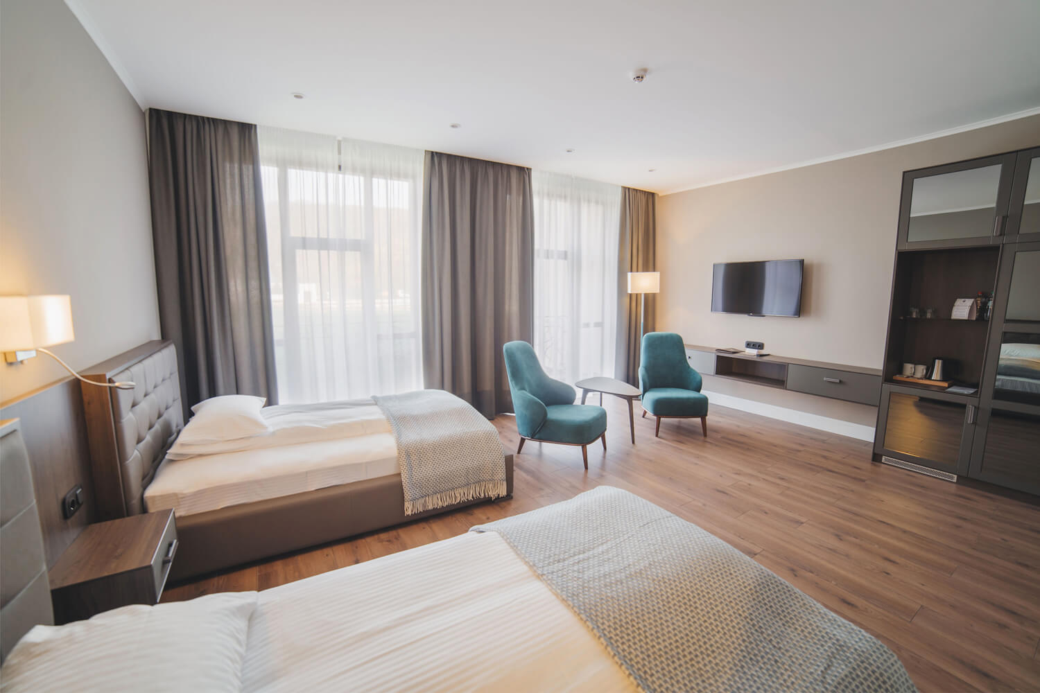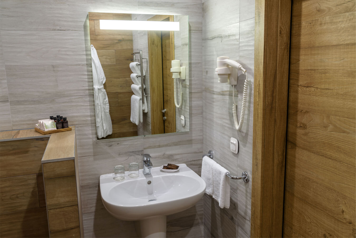 "Ірис" - сучасна європейська готель на 130 номерів різних категорій. В інтер'єрі поєднуються стиль мінімалізм, естетика лаконічних елементів і стримана елегантність. Природне освітлення створює затишок, а панорамні вікна відкривають пейзажі Деренівська Купелі.