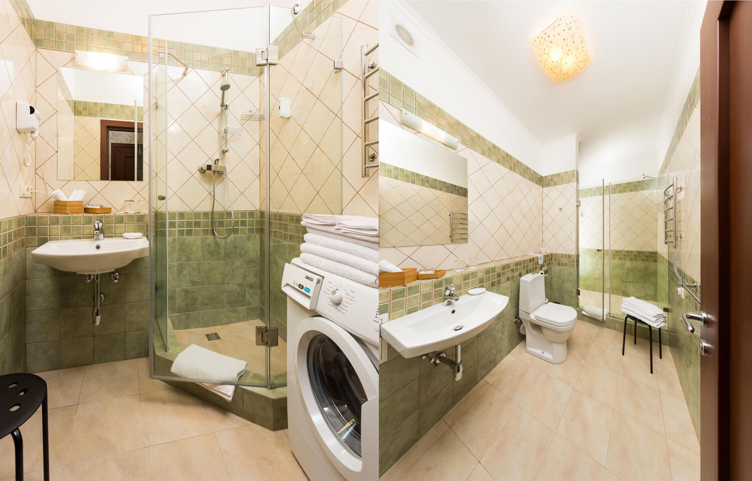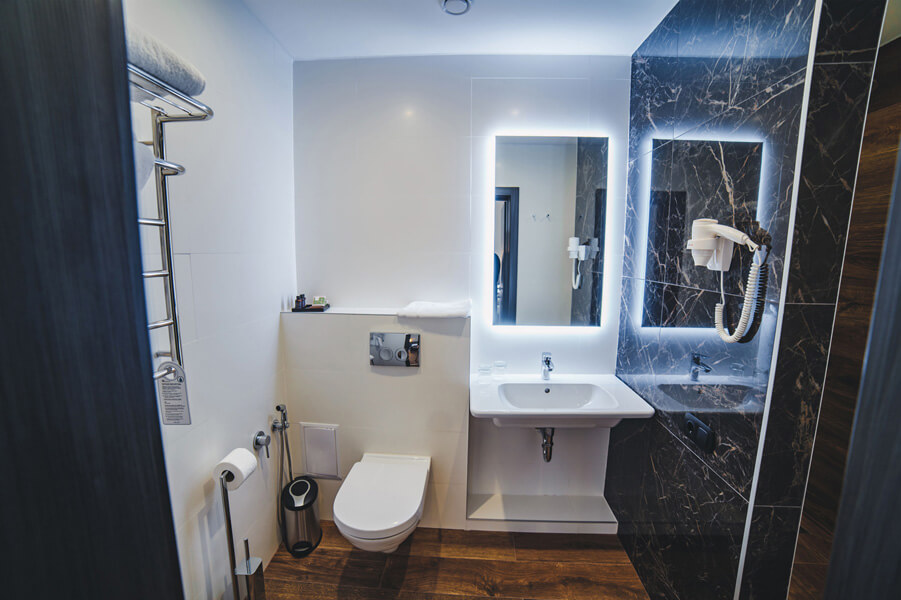 Затишний двокімнатний номер з вітальні, 2 душовими і туалетними кімнатами.